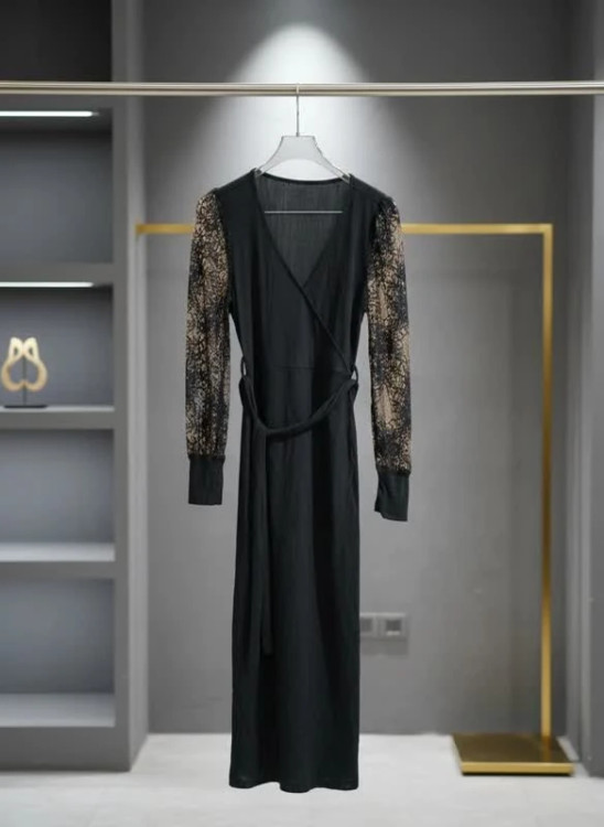 پیراهن مجلسی زنانه Noir Grace با طراحی بلند و فرم ظریف، انتخابی شیک برای مهمانیها و مراسم رسمی است. این لباس با یقه هفت چپوراستی، آستینهای تور طرحدار و کمربند پارچهای در کمر طراحی شده که باعث ایجاد فرم زیبا و کشیده در استایل میشود. رنگ مشکی کلاسیک آن در کنار آستینهای نیمهشفاف جلوهای ظریف و لوکس ایجاد میکند و بهراحتی با کفش پاشنهدار و اکسسوریهای مجلسی ست میشود.