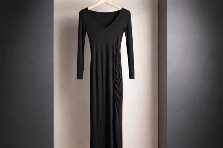 پیراهن مجلسی زنانه مدل Midnight Elegance با طراحی مینیمال و یقه هفت، انتخابی شیک و جذاب برای مهمانیها و مراسم رسمی است. این پیراهن بلند با برش جذب و چین ظریف در قسمت کمر، فرم بدن را زیباتر نشان میدهد و با رنگ مشکی کلاسیک، استایلی خاص و همیشه ترند ایجاد میکند.