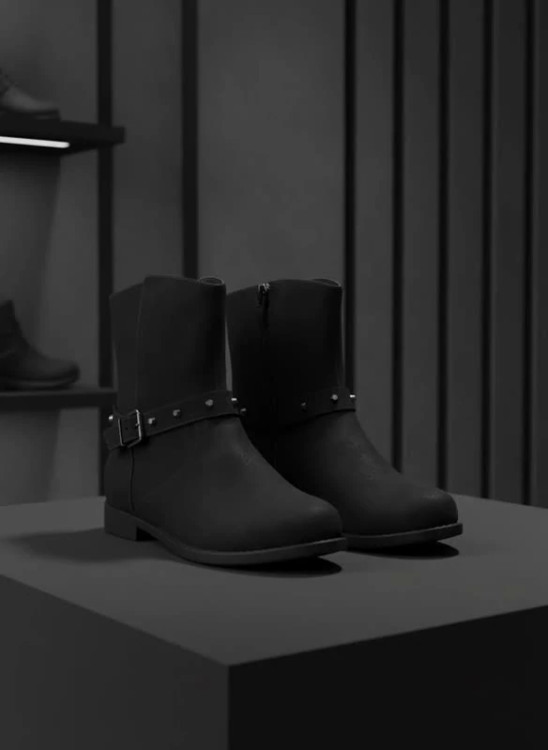 نیم‌بوت زنانه مدل Black Studded Strap