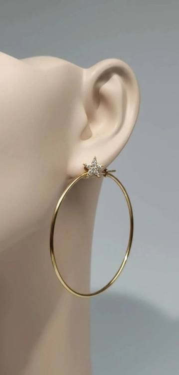 گوشواره زنانه مدل Star Charm Hoop با طراحی حلقهای بزرگ و آویز ستاره کریستالی درخشنده، جلوهای خاص و چشمنواز به استایل شما میبخشد. حلقهی طلایی ظریف و براق به همراه ستارهی کوچک و درخشان، ترکیبی از سادگی و لوکسی است که این اکسسوری را برای استفاده در استایلهای روزمره و مهمانی به انتخابی بینظیر تبدیل کرده است. این مدل با فرم کلاسیک حلقهای و تأکید بر جزییات ظریف، به راحتی با انواع لباسها و موقعیتها هماهنگ میشود و رنگ گرم طلایی آن به شما حال و هوای درخشان و زنانه میبخشد.