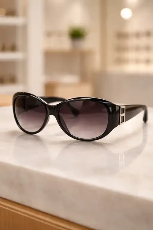 عینک آفتابی Black Elegance Oval با فریم مشکی براق و لنزهای دودی گرادیان، انتخابی شیک برای استایلهای کلاسیک و زنانه است. طراحی بیضی نرم همراه با جزئیات فلزی روی دستهها، ظاهری لوکس ایجاد کرده و لنزهای UV400 محافظت کاملی در برابر اشعههای مضر خورشید فراهم میکنند