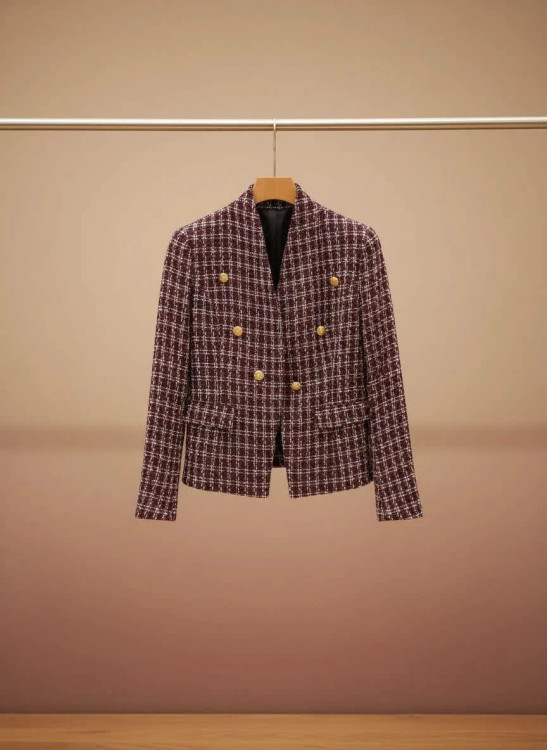 کت زنانه چهارخانه دکمه طلایی مدل “Paris Tweed”